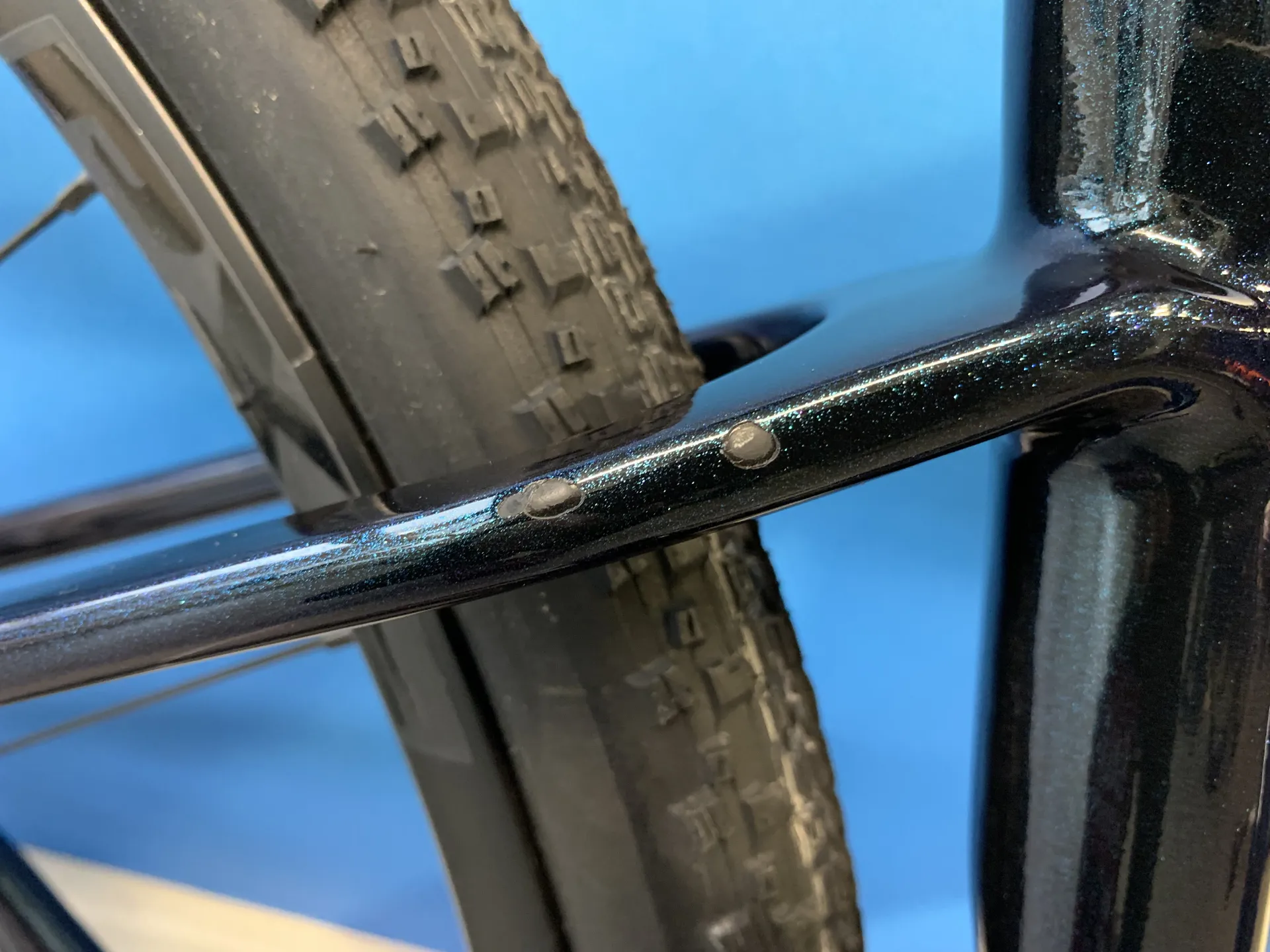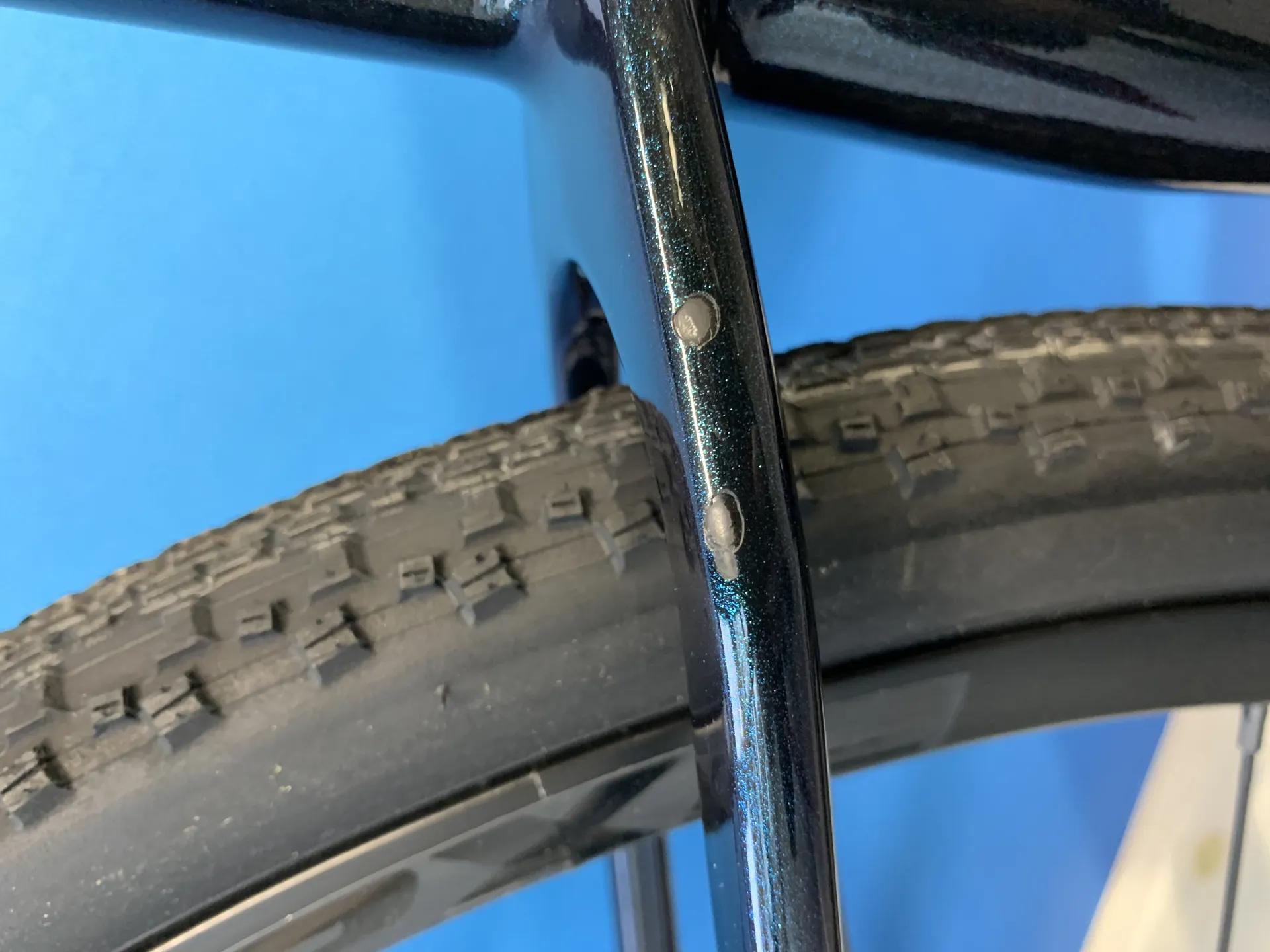 Factory tubeless set up, 53mm max tyre size in "long" flip chip position, 42mm max tyre size in "short" flip chip position