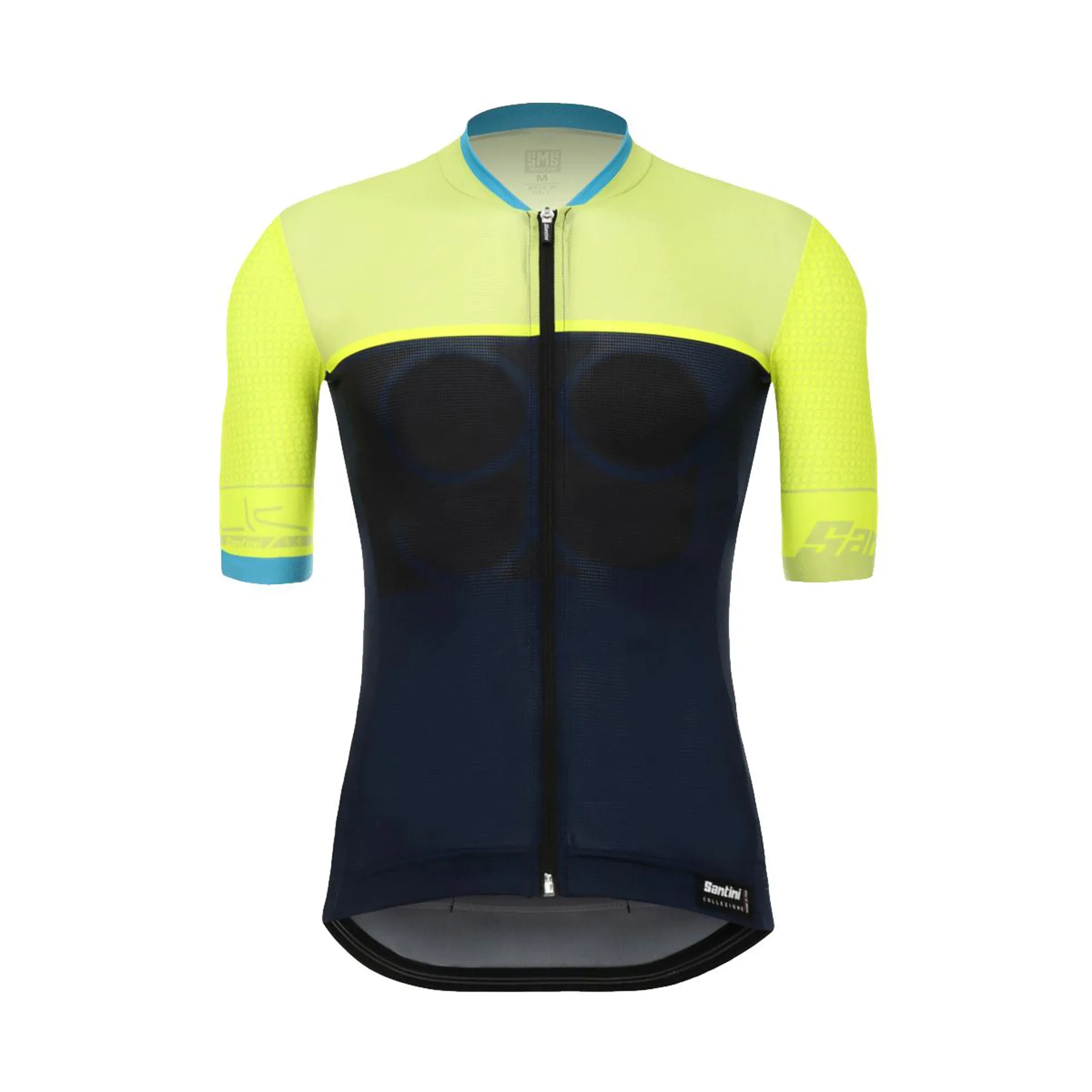 • Comfort - The cut of the collar is inspired by Santini’s aero speedsuit designs. The petal form alleviates any discomfort that may be caused by the zipper coming into contact with the neck