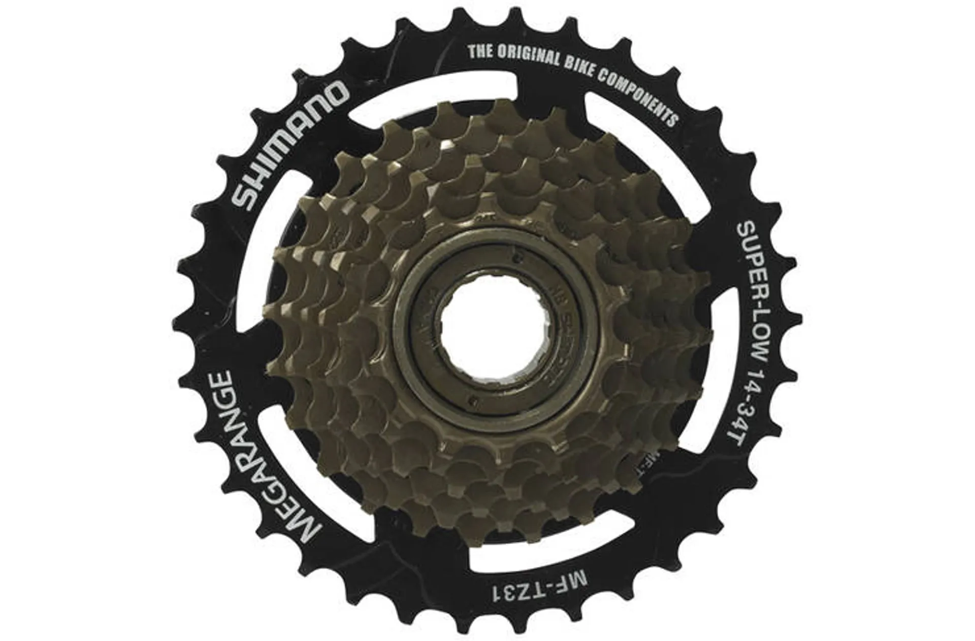 Conquer the hills with the super-low 34t gear on this megarange tz31 7-speed freewheel.