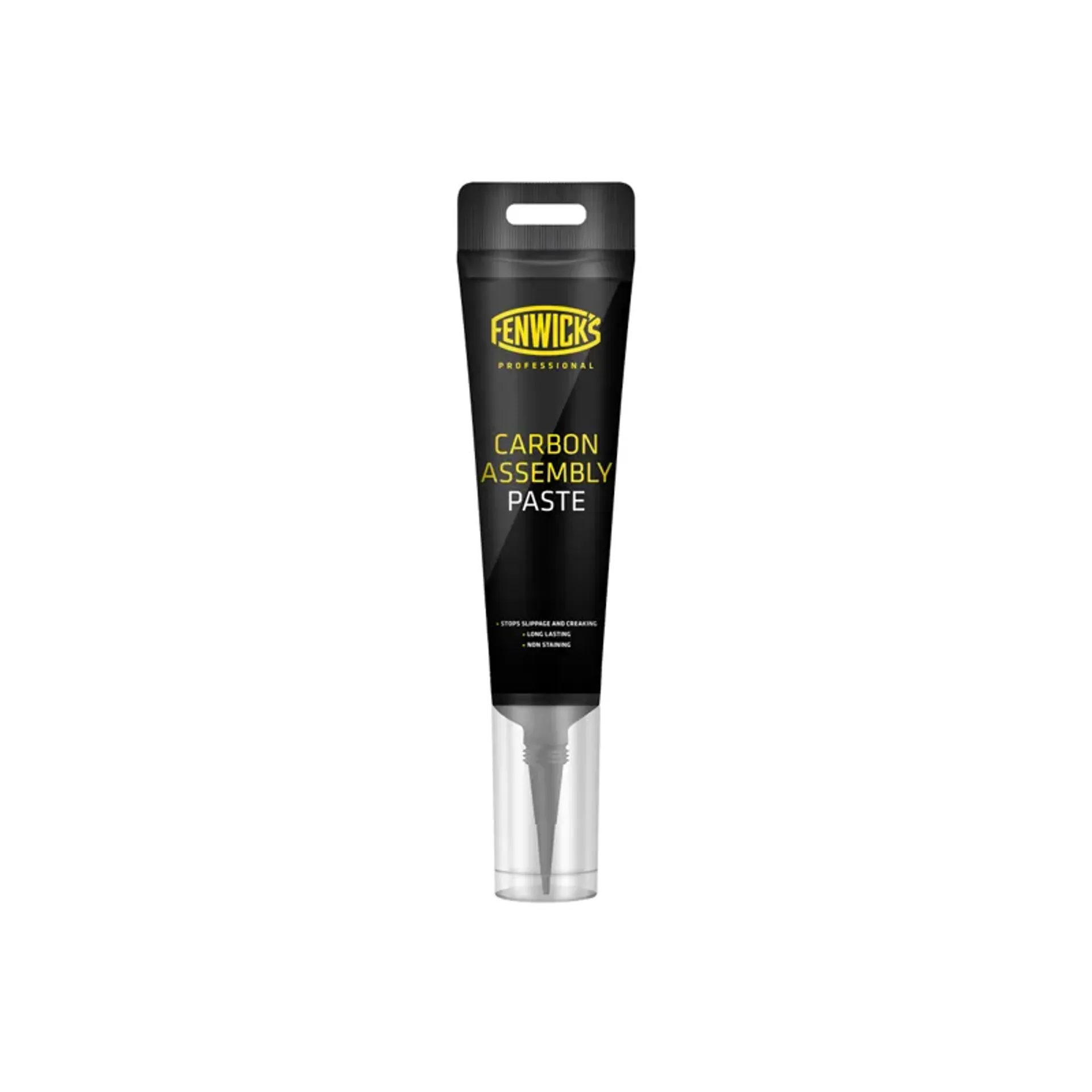fenwick’s professional carbon assembly paste increases the grip of carbon-to-carbon or carbon-to-metal parts, helping prevent slippage in use. Highly pliable beads deform and grip carbon when under pressure, allowing the correct torque settings to be used on delicate carbon fibre components. The 80ml tube packaging negates the need for a special applicator, as it includes a pinpoint nozzle for accurate application and minimal wastage.